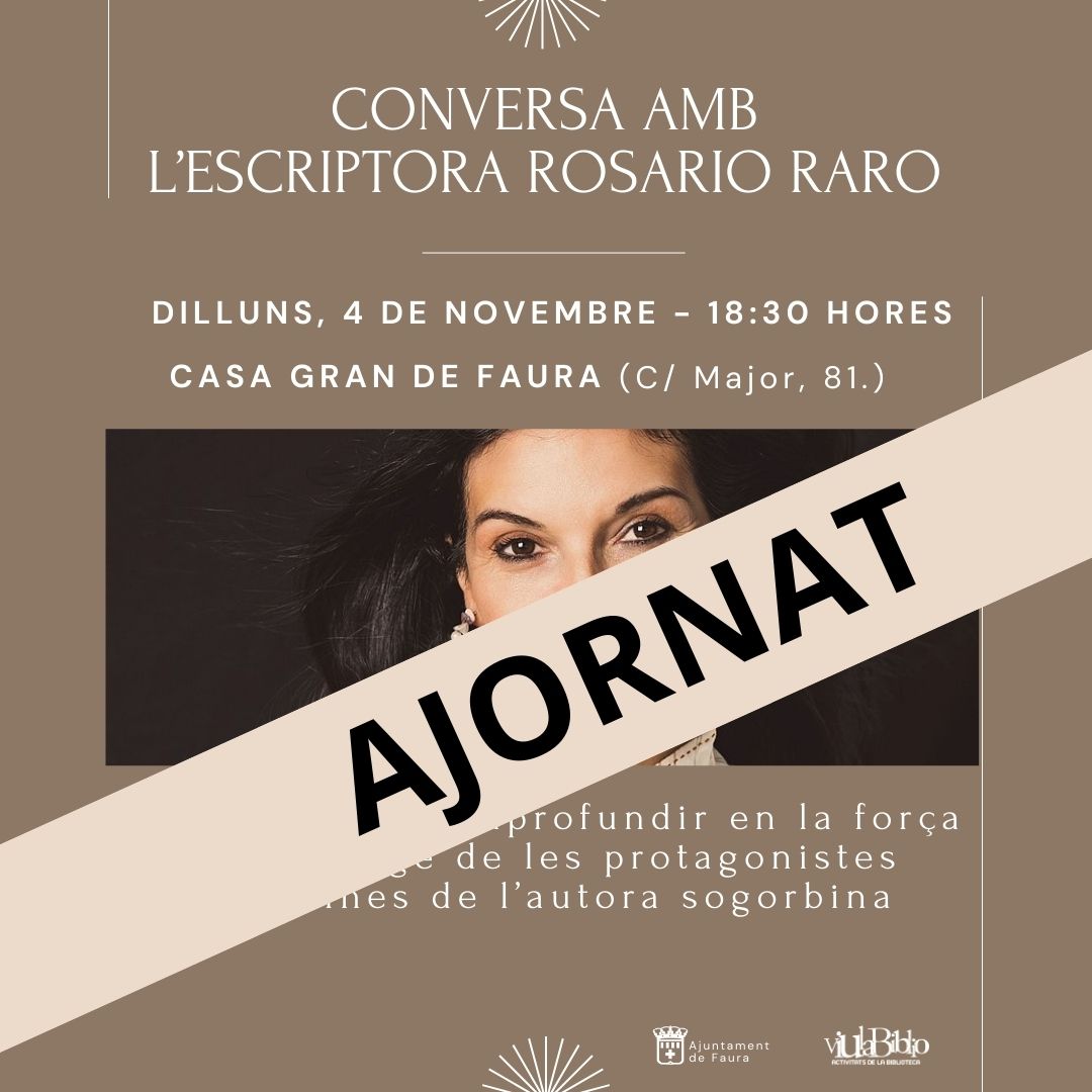 Davant la situació d'extrema gravetat que travessen molts pobles de València a causa de la DANA, l'activitat "Conversa amb l'escriptora Rosario Raro" queda ajornada.