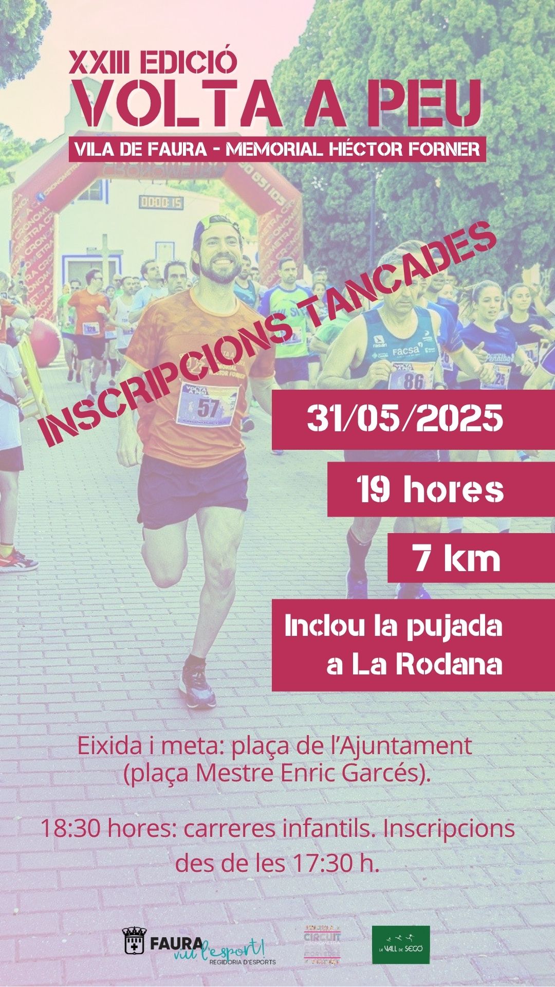Aquest dissabte, 31 de maig, Faura tornarà a viure una jornada esportiva amb la celebració de la XXIII Volta a Peu Vila de Faura – Memorial Héctor Forner, una de les cites més esperades del calendari local. Enguany, a més, la carrera arriba carregada de valors: solidaritat, inclusió i suport al comerç de proximitat afectat per la dana del passat 29 d’octubre. El regidor d’Esports de l’Ajuntament de Faura, Sergio Mateo, ha destacat que “enguany, la Volta a Peu és més que una carrera, és una mostra de solidaritat i compromís col·lectiu”.