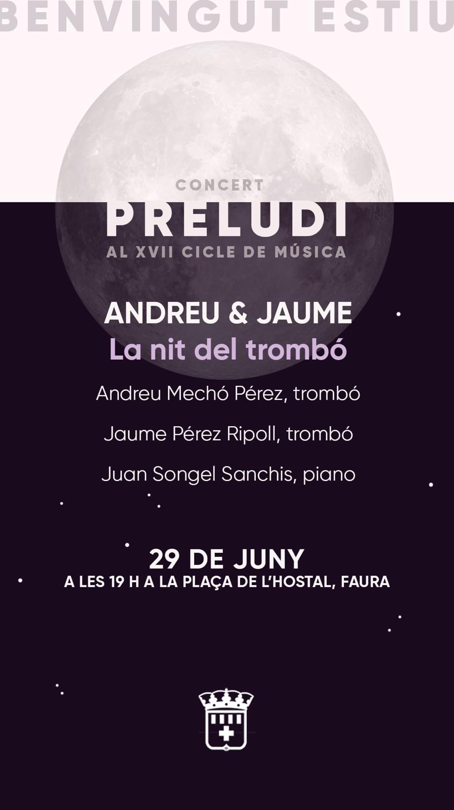 El concert estarà protagonitzat per Andreu Mechó Pérez i Jaume Pérez Ripoll, trombonistes nascuts al poble, juntament amb el pianista valencià Juan Songel Sanchis. Junts interpretaran obres que abracen des del Renaixement fins al segle XX, amb arranjaments per a trombó i piano que posaran a prova la sensibilitat, la tècnica i la complicitat dels intèrprets.