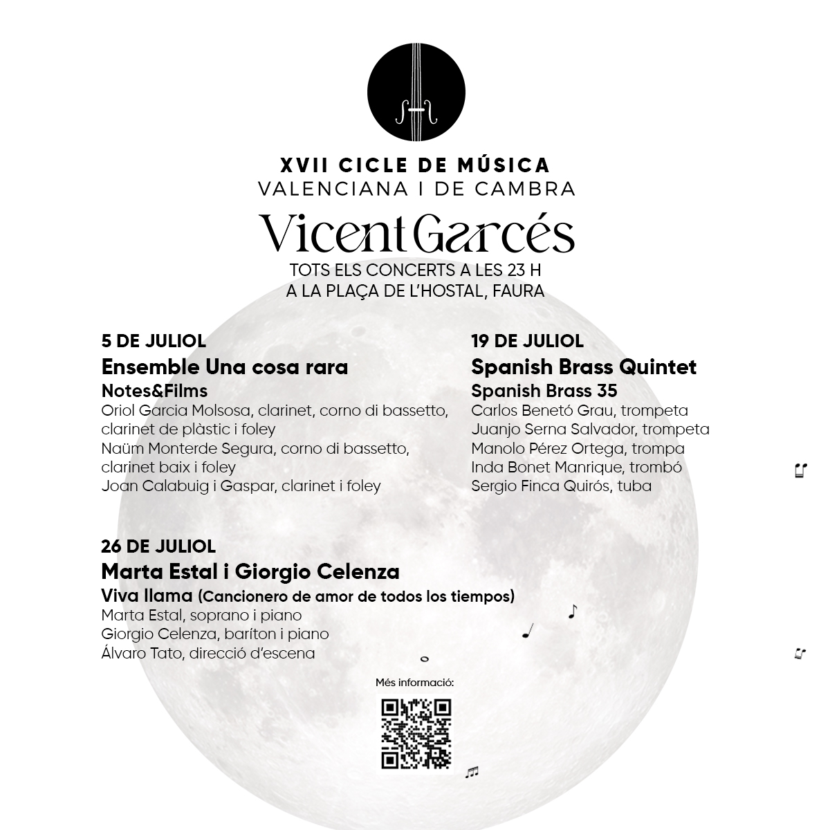 Com ja és habitual, tota la informació d’aquesta XVIIa edició del Cicle "Vicent Garcés" es pot consultar a www.fauradigital.es/cultura, on, a més de fotografies dels grups i vídeos d'algunes actuacions, les i els internautes podran llegir el currículum vitae dels intèrprets i altres informacions d'interés.