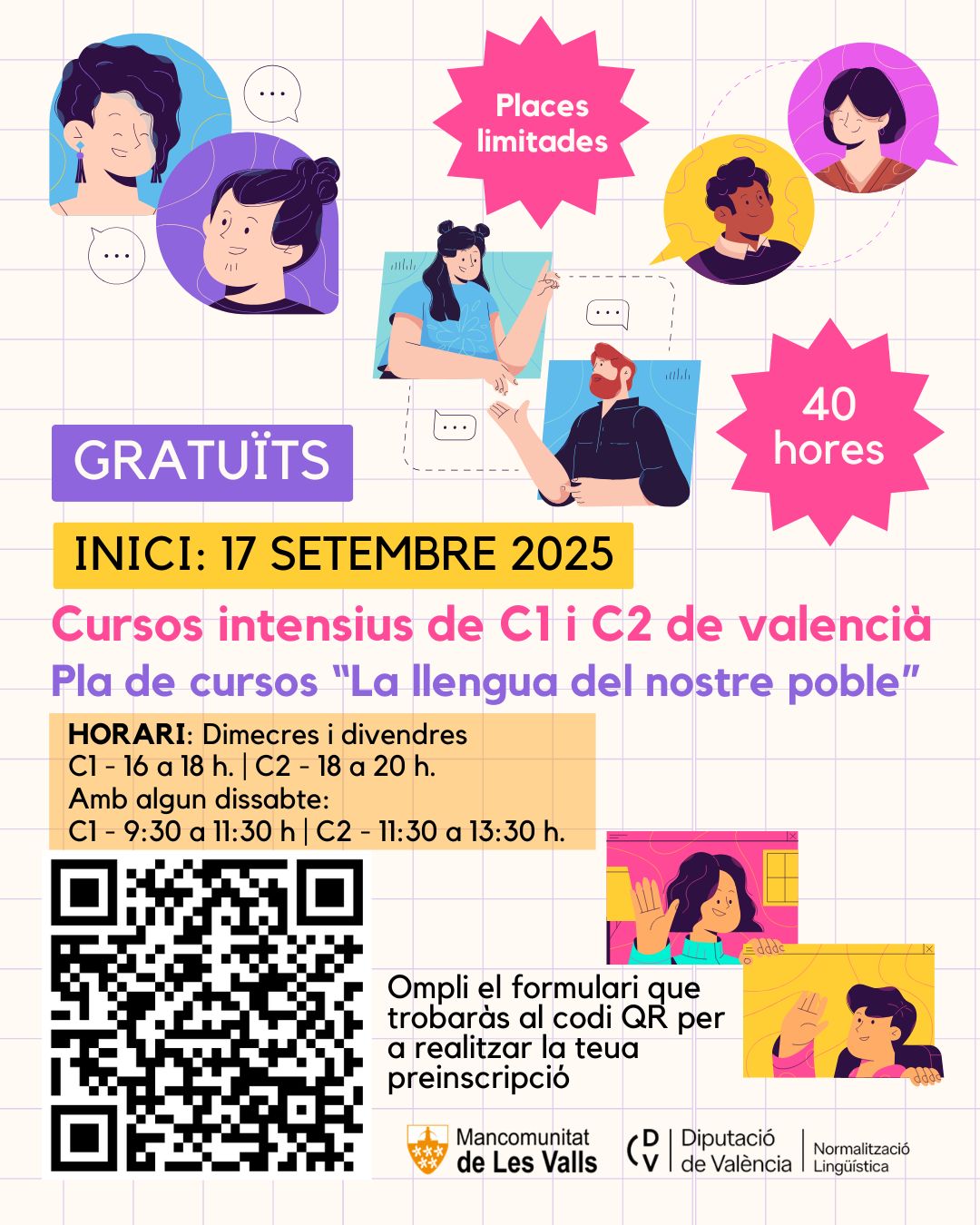 Després de l’èxit de l’any passat, la Mancomunitat de Les Valls torna a llançar els cursos gratuïts de nivell C1 i C2, gràcies al programa "La llengua del nostre poble" de la Diputació de València.