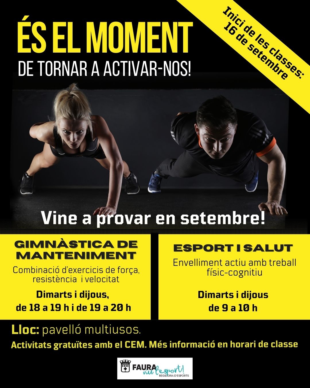 Les activitats, gratuïtes amb el Carnet Esportiu Municipal, comencen el 16 de setembre