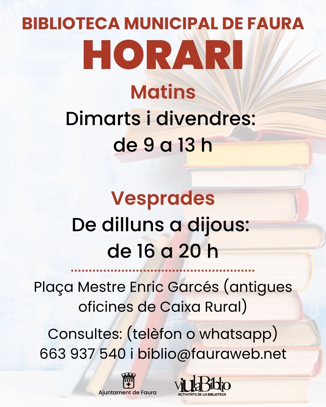 Des del 15 de setembre, la biblioteca torna al seu horari habitual.