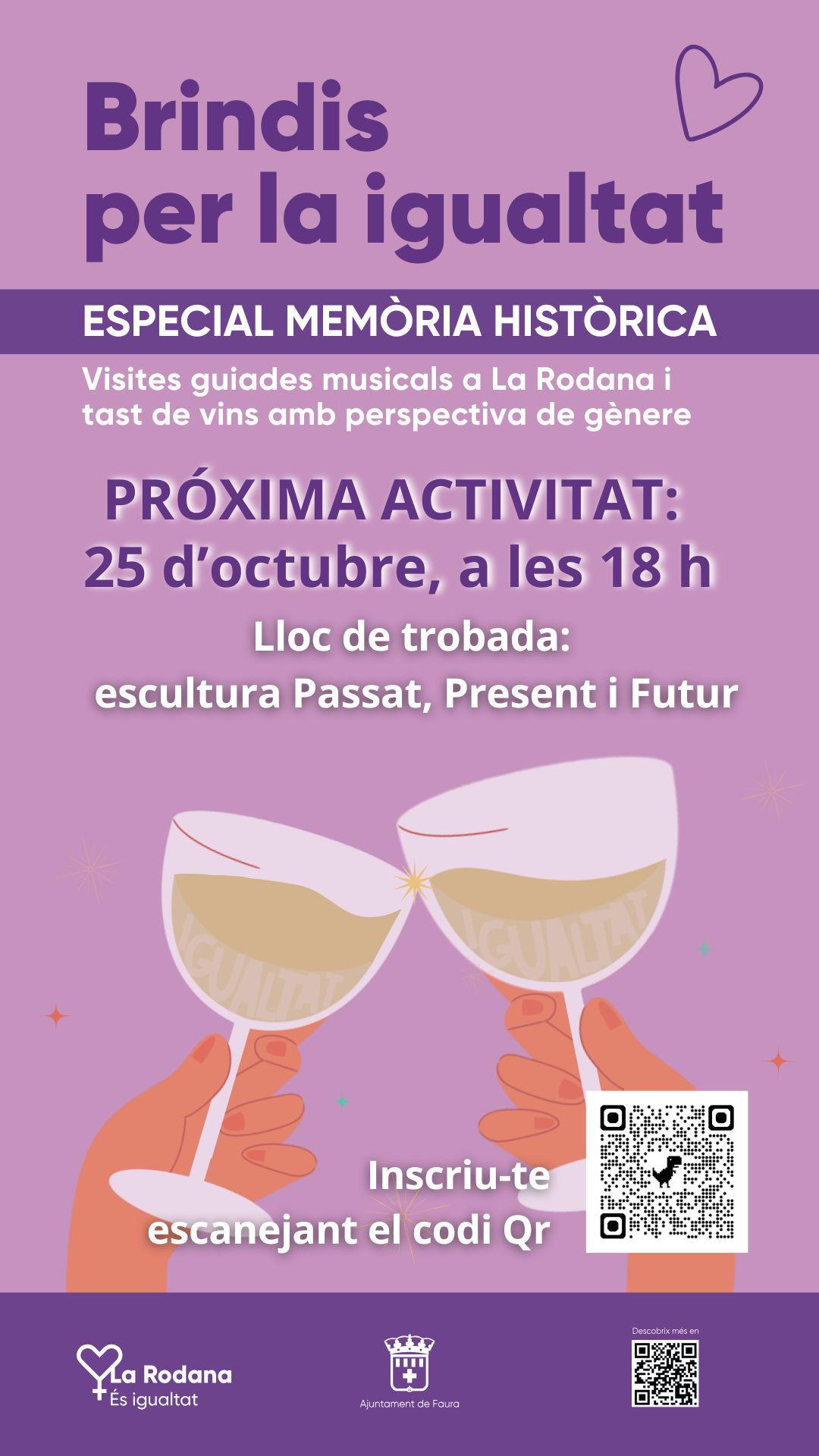 Aquest “Brindis per la Igualtat” es convertirà en l’escenari d’una ruta guiada dedicada a visibilitzar la memòria de les dones vinculades a la Guerra Civil i la Dictadura, destacant tant figures col·lectives com individuals que van ser exemple de lluita, resistència i compromís amb la llibertat. El recorregut recordarà noms com les 13 Roses, Carmelina Sánchez-Cutillas, Clara Campoamor, les Sinsombrero o María “la Jabalina”, dones que van deixar una empremta profunda en la història per la seua valentia i la seua defensa dels drets i la igualtat entre homes i dones.