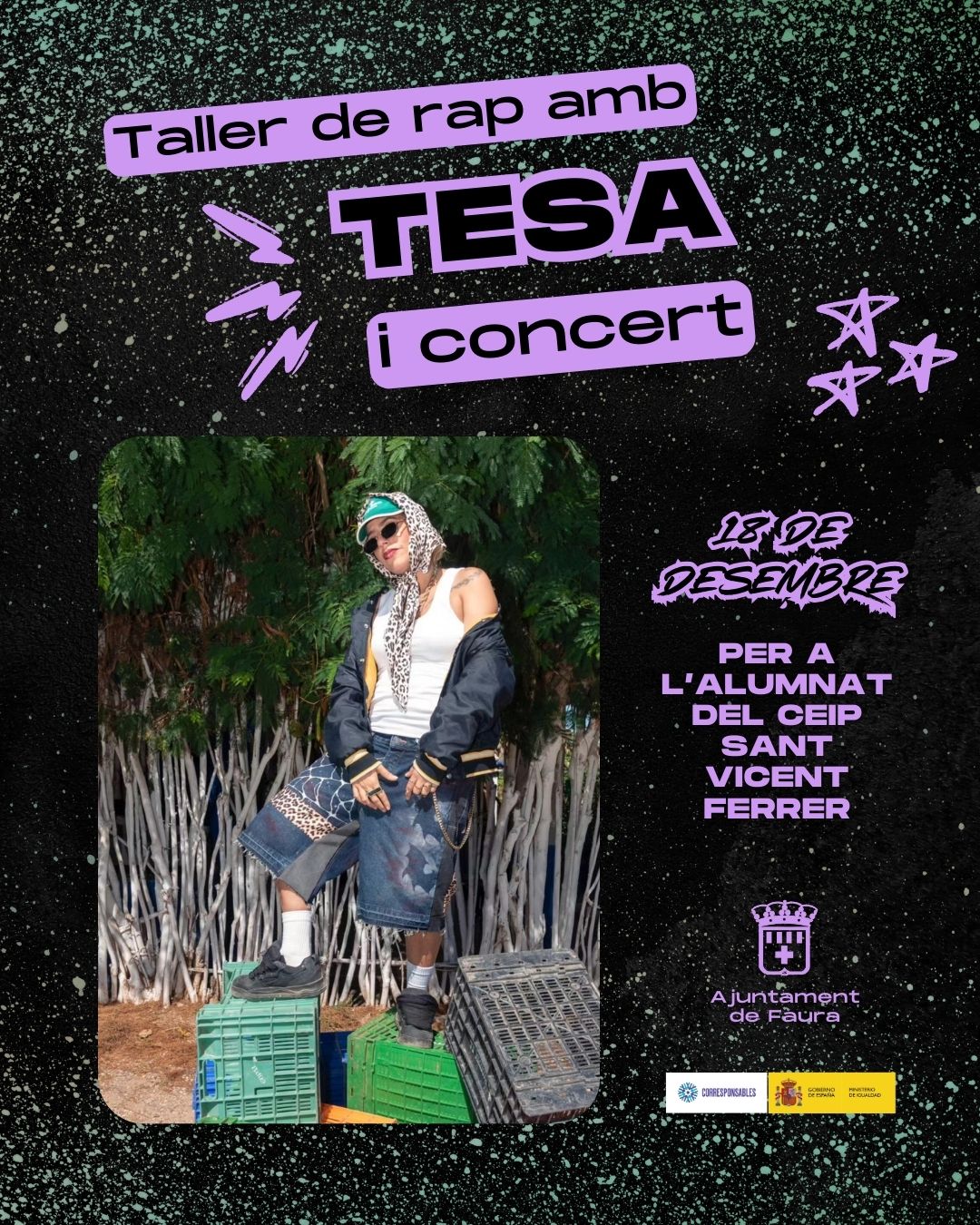 L’Ajuntament de Faura, en la seua aposta per una educació basada en la igualtat i el respecte, ha organitzat per al 18 de desembre una jornada molt especial al CEIP Sant Vicent Ferrer. A partir de les 9:30 hores, l’alumnat de cinqué i sisé de Primària participarà en quatre tallers de rap conduïts per la rapera valenciana Tesa, una de les veus més representatives del panorama musical en valencià. La alcaldessa de Faura, Consol Duran, ha destacat “la importància d’impulsar iniciatives educatives que combinen la creativitat artística amb la formació en valors”. A més, ha apuntat que, pel que fa al rap, “és un gènere musical proper a l’alumnat i amb una forta càrrega reivindicativa, pel que esdevé una eina pedagògica òptima per reivindicar la igualtat entre xics i xiques des d’un llenguatge creatiu i motivador”.